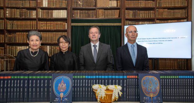 “Há pelo menos 132 anos que a Tailândia desempenha um papel fundamental na preservação e difusão das escrituras budistas através da sua impressão”, destacou Thanpuying Varaporn Pramoj Na Ayudhaya. Ela recordou que, já em 1893, a Biblioteca Geral da UC fora uma das 25 bibliotecas do mundo a receber a primeira versão impressa da Tipiṭaka (Chulachomklao of Siam Pali Tipitaka Bangkok Era 112 Edition), publicada durante o reinado do Rei Chulalongkorn do Sião (Rama V).