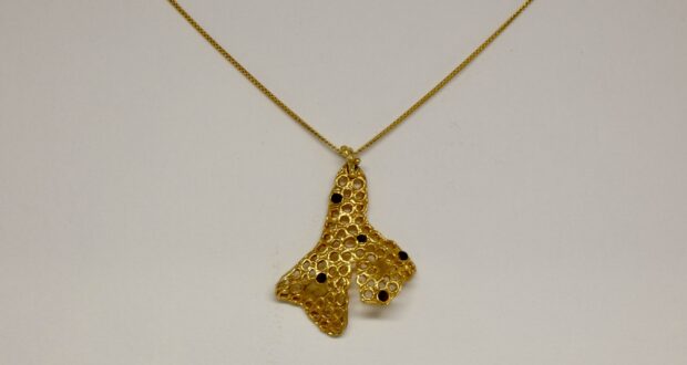 Além disso, o processo envolve corte, aquecimento e moldagem manual, criando superfícies translúcidas e irregulares. Por sua vez, estas formas são trabalhadas com cobre e banho de ouro de 24 quilates. Por fim, é possível ver na coleção o conceito de joias plastico reciclado museu tesouro real ecos reais.
